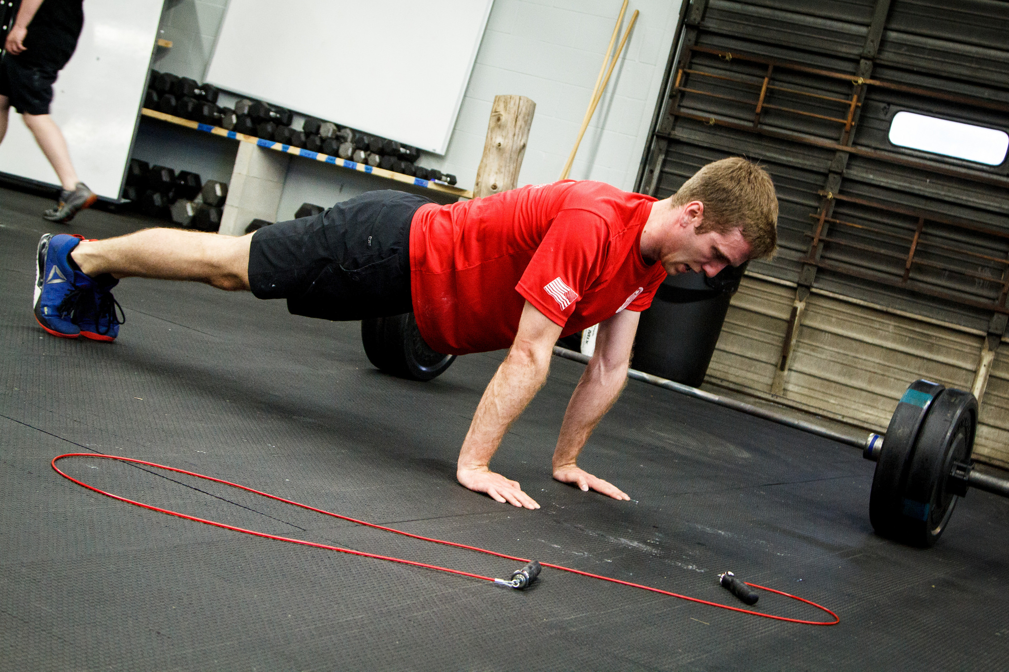 WOD: 3 + 29 using low barbell for pushups